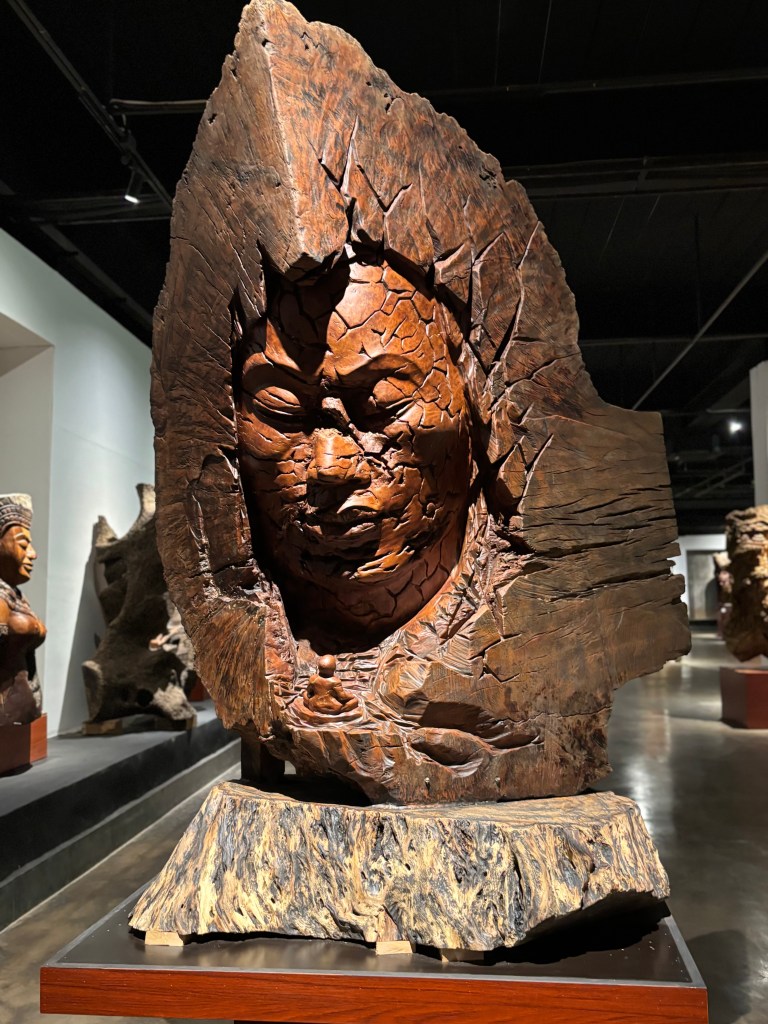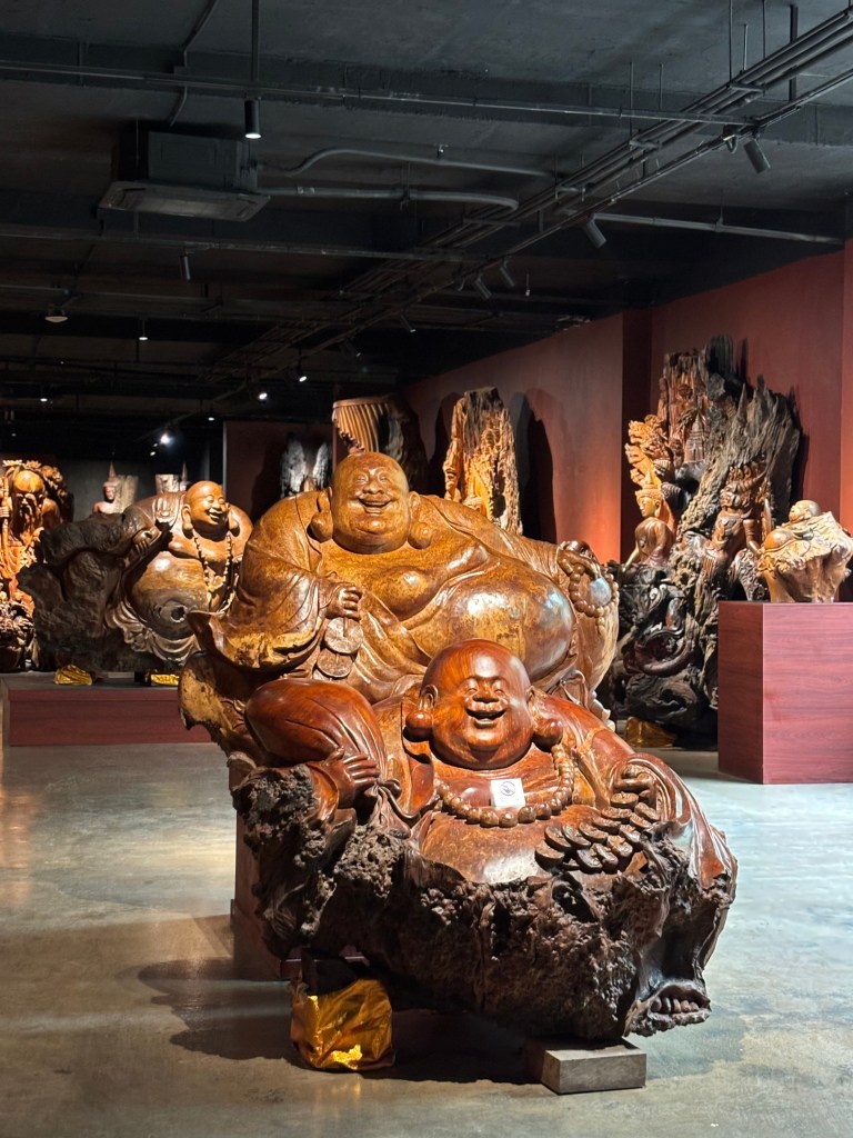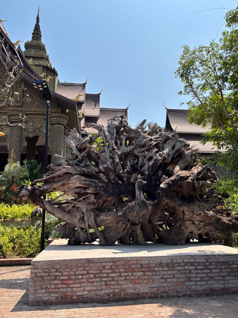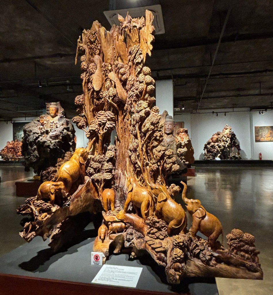 The Vientiane Art Museum is way out of town – the official 10K seems to be a lot more on the motorbike (riding pillion). There is no public transport to it – tours only, or private arrangements. The museum building is on an island, and visitors are ferried there across a pontoon bridge in golf carts. Inside is the Aladin’s cave of fine Laos wood carvings, mainly devotional but also some secular. (The Lonely Planet also mentions the Laos Museum on the same road but that is now “exclusively for the Chinese” where they can purchase things.)