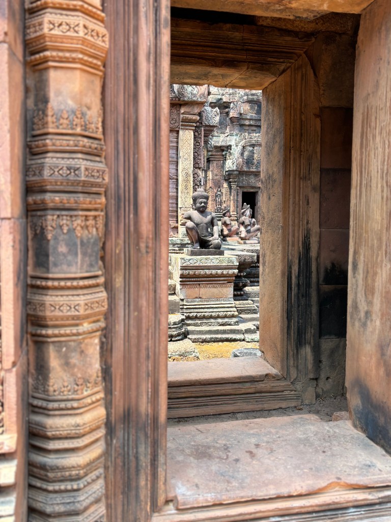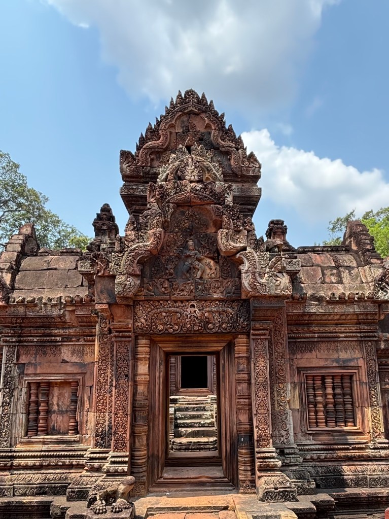 Angkor Wat. Took the Sunset tour with a very good, knowledgeable and informative guide, “David”, so that when I went on my own (hired a tuk tuk for the day) to the outlying temples, it all still made sense. The place is staggeringly large – the furthest temple was 37 K from Angkor Wat. Siem Reap had been the capital of the Khmer empire and every ruler built the temples to his religion or “adjusted” what was there . (It was Hindu, and Buddhist, and some Brahma and animist, but mainly the first two. ) To round it all off, also got up early for the sunrise over Angkor Wat. By a fluke, I was there on the 21 March, the day of the spring equinox, an important date in the Angkor culture calendar.