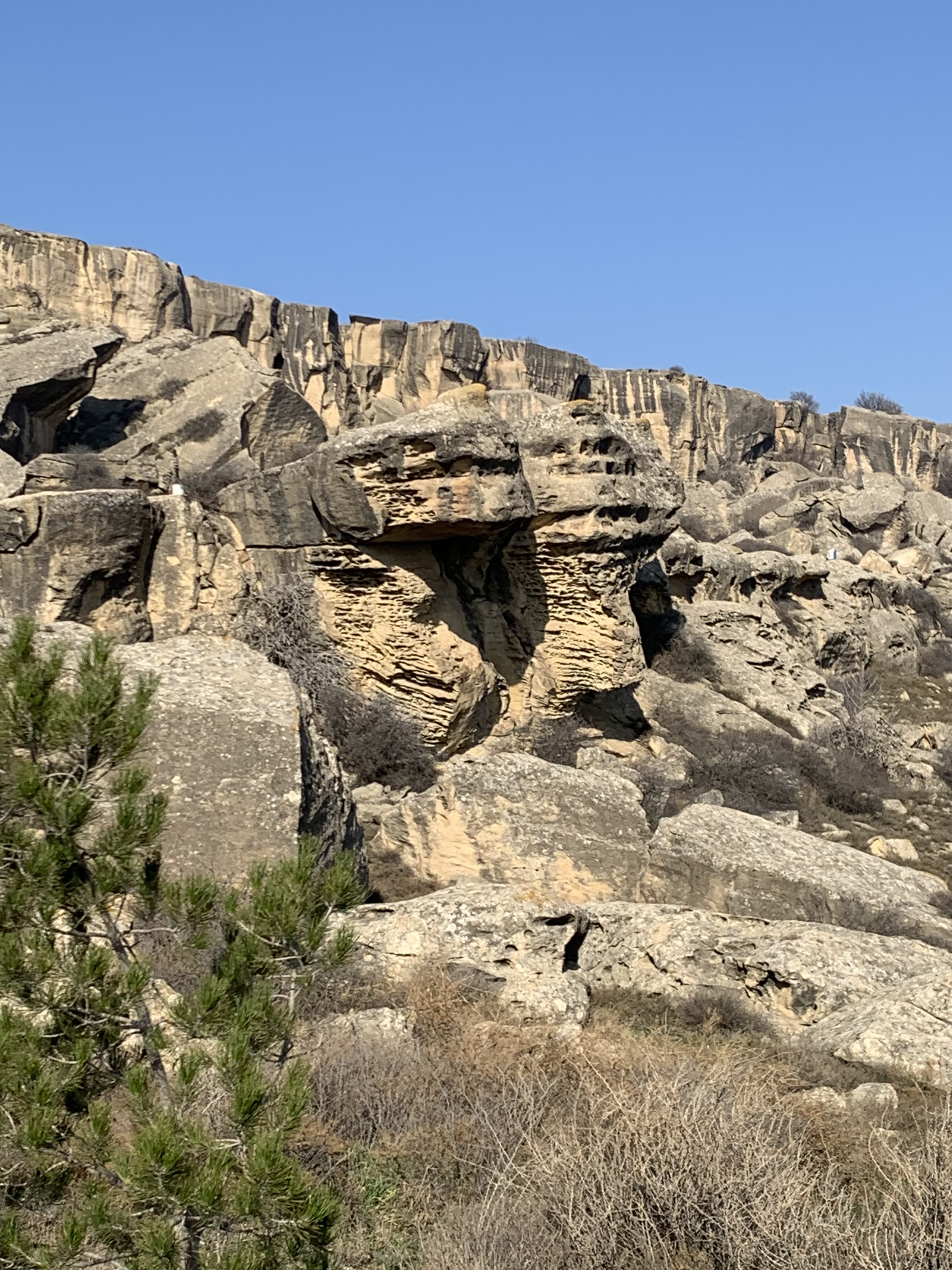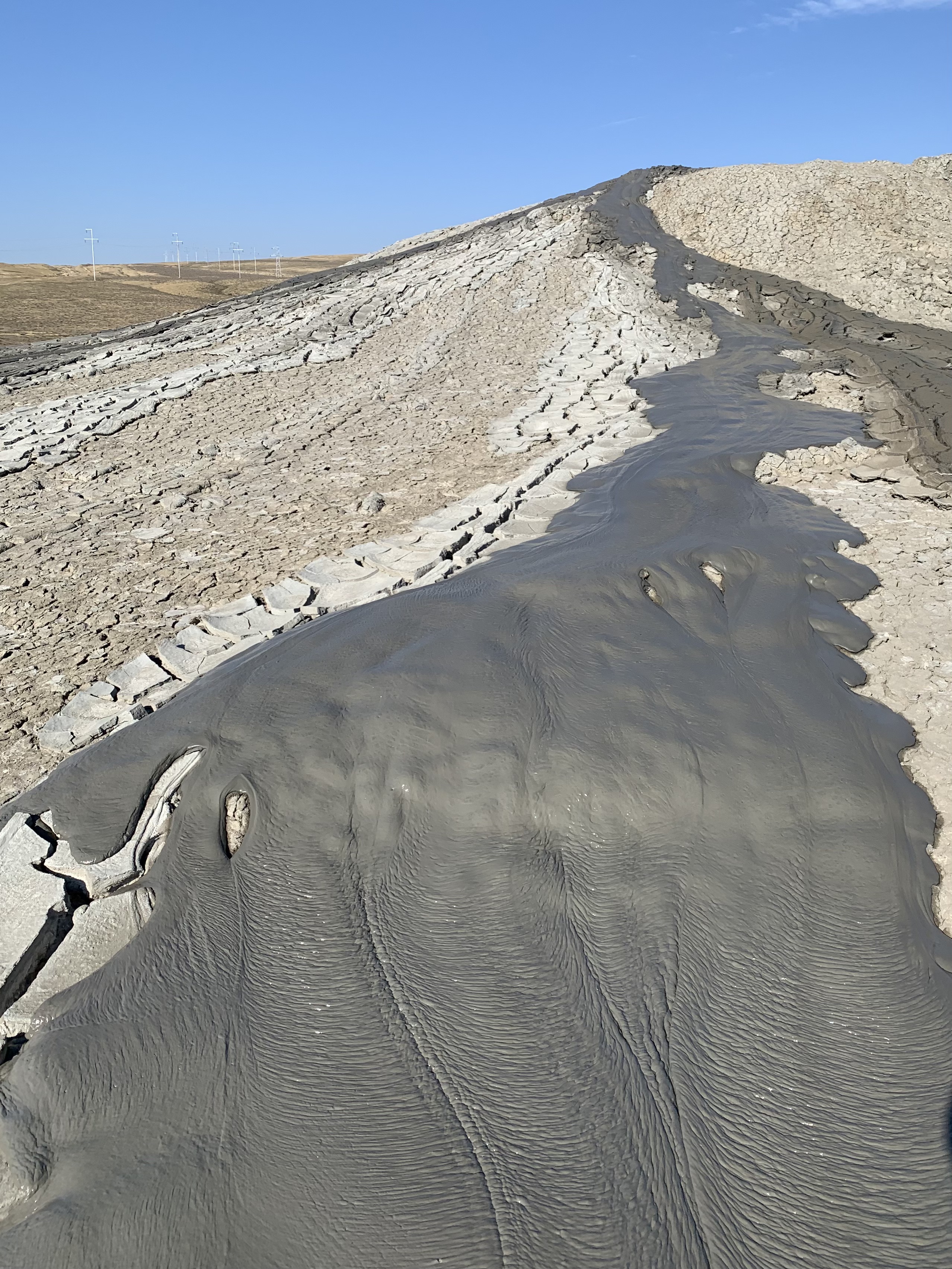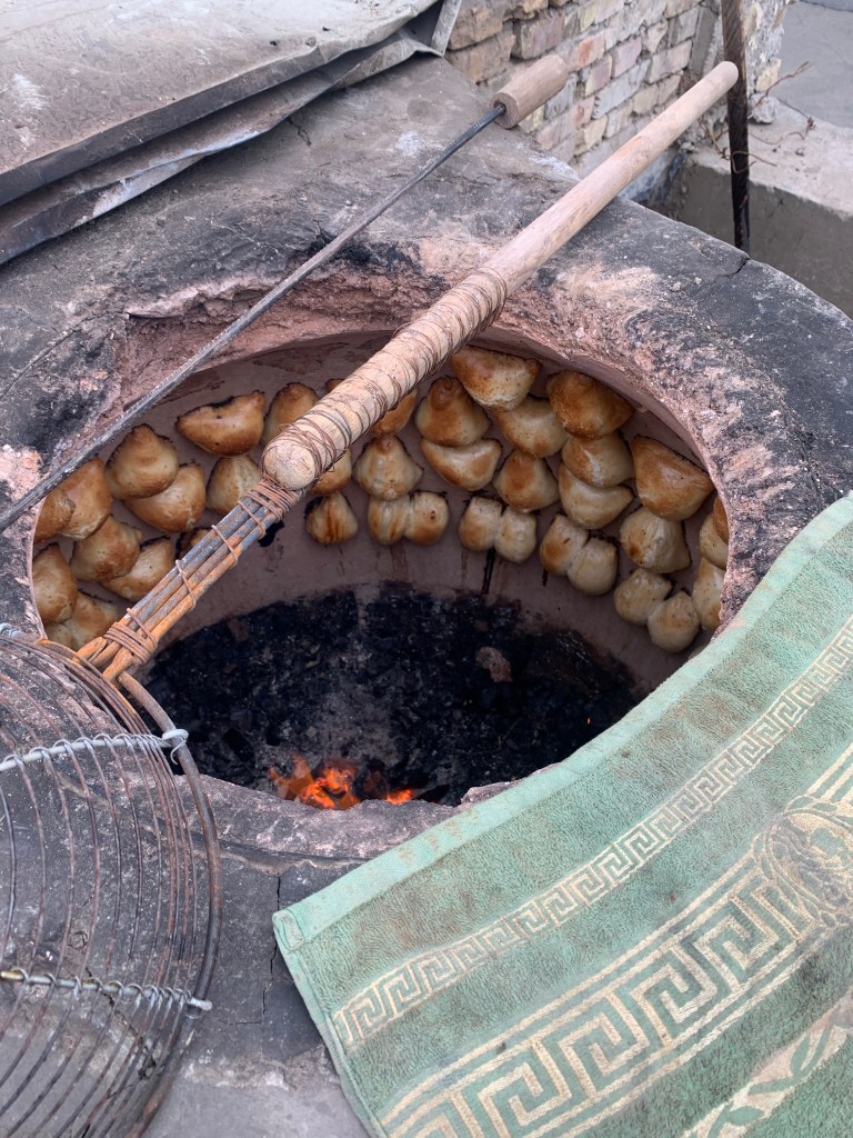 Then a long drive to Darwaza, in the middle of the Karakum desert, where The Gates of Hell gas crater has been burning since the 1970’s when the Soviet experts were prospecting for natural resources (Kara-kum means ‘black sand’, as there is a lot of shale underneath). I was told there had been a lot of heavy equipment in the area at the time and a spark may have caused an explosion that created the crater – there are metal bits and pipes visible at the bottom. The natural gas has been burning since. (It made me smile, thinking of the Azerbaijan’s “Fire Mountain”, which is but a smidgeon compared to the hundreds of clean, smokeless flames around the giant crater.