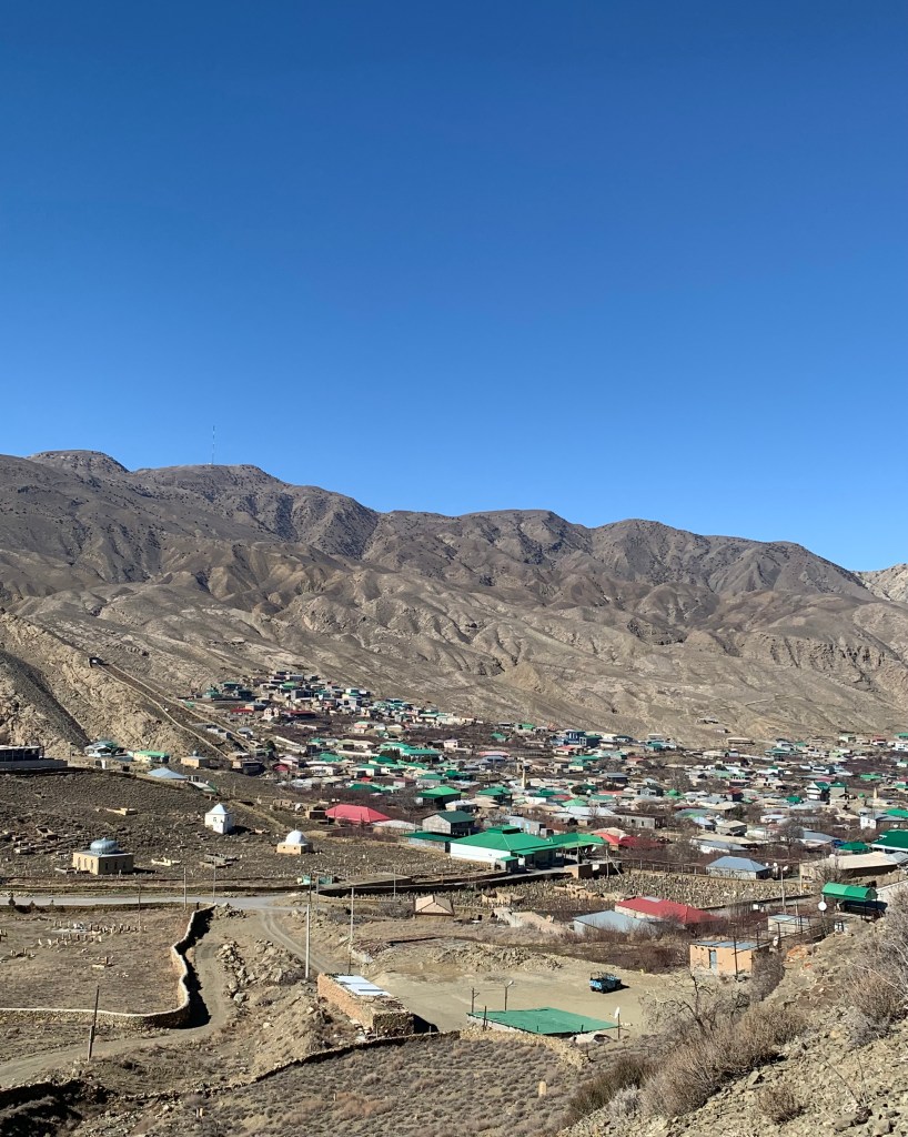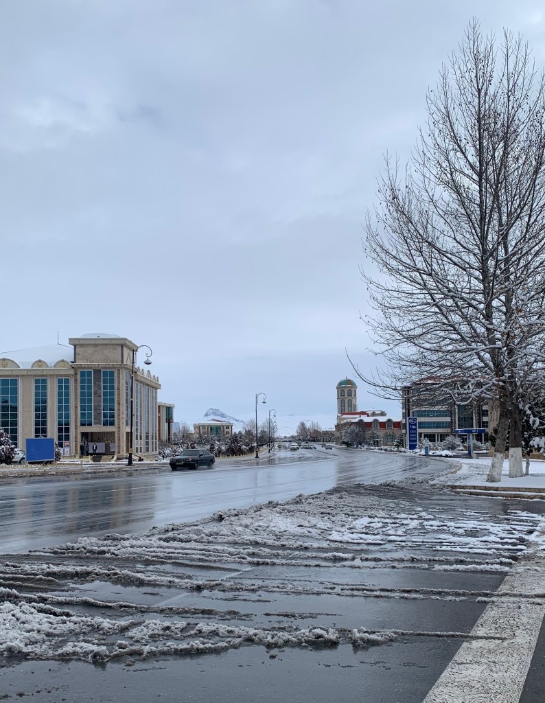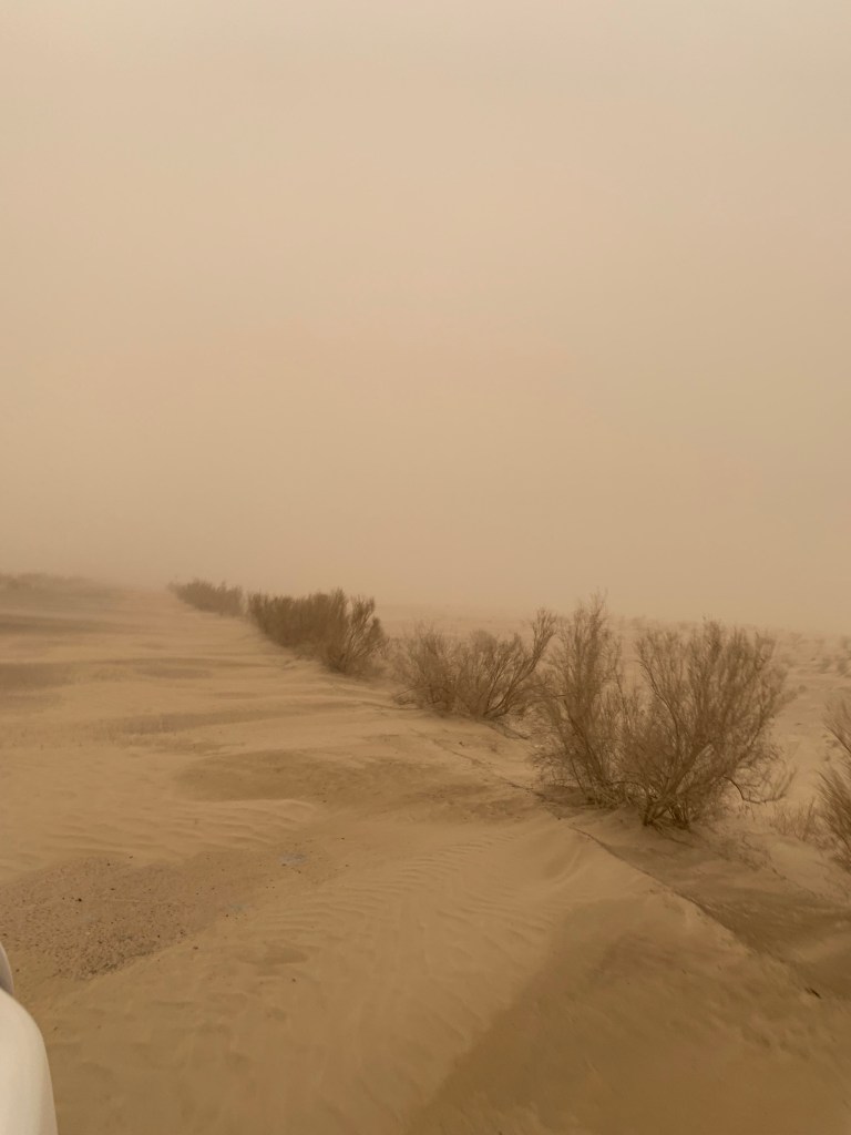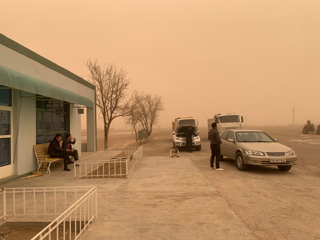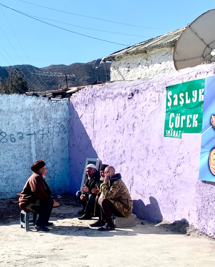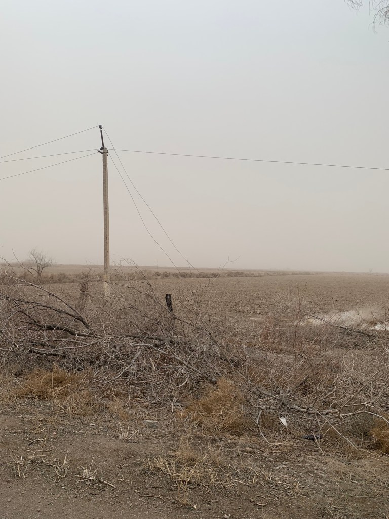 The roads are abysmal. Rutted, potholed, scraped, ploughed, furrowed, scarred, disappeared. The dual carriageway (not always dual) was used on both sides in both directions as each driver tried to find the least damaged bit to drive over. We drove on the right and on the left, overtook on any side, went off road when that was the least awful part. Guwanch manoeuvred the 4-wheel drive Toyota Hilux with (new) heavy duty winter tyres with skill and panache – he had a schedule to keep (to get me to all the places on the programme – we did 310 km on the first day). That day, the wind was up, the sand carried across the road in gusts as blinding as a sudden fog. We saw a tree brought down by the wind that crashed onto the electric wires and broke them – it looked like the ground was burning and Mekan called the provincial fire brigade to tell them about it.