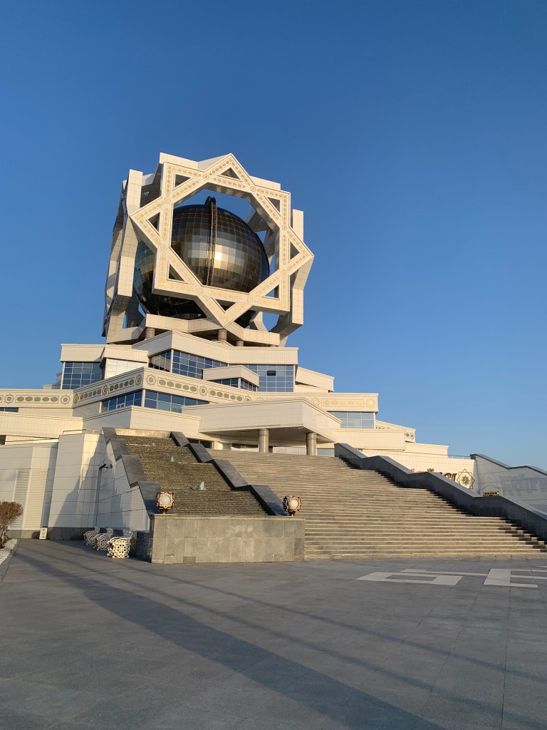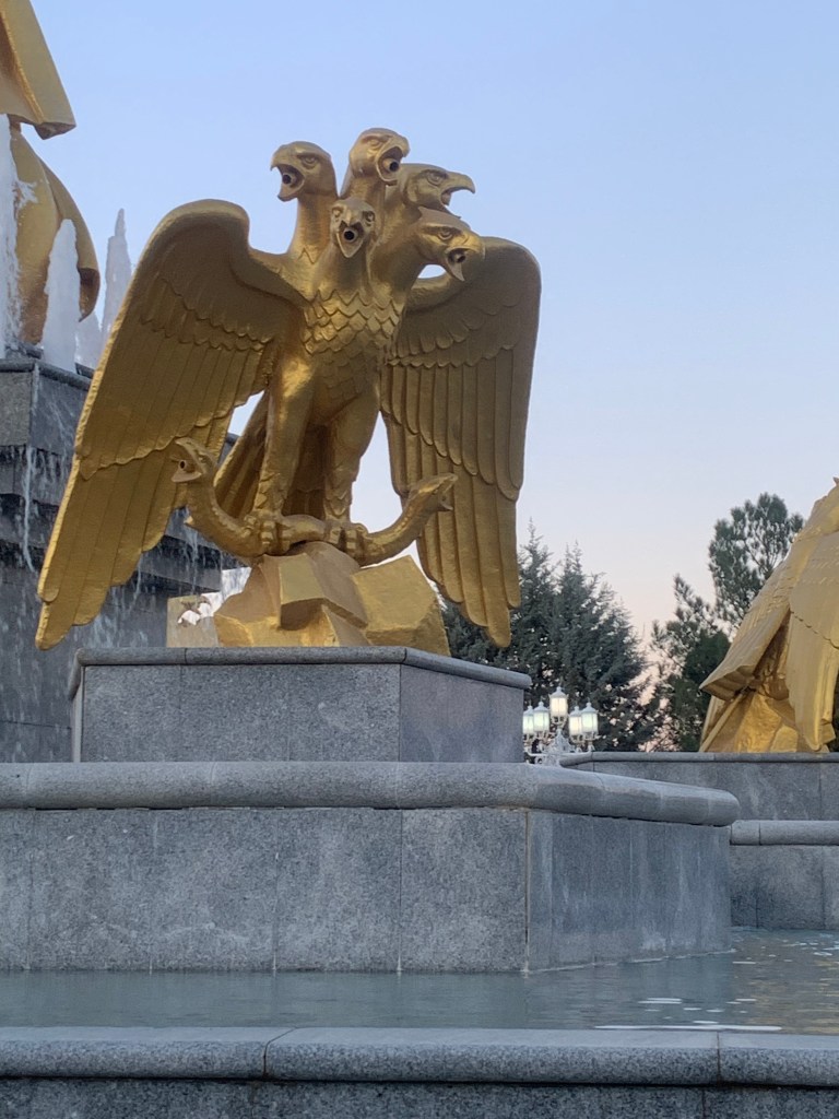 There are some odd things – such as the largest (and only) Ferris wheel inside a building (I did ask, why?). The national flag pole may not be the tallest but is the only one in the world with a jet engine installed to ensure steady fluttering. The five tribes that make up Turkmenistan are represented on the flag with the ancient symbols often seen in their carpets; the National Museum of Turkmenistan incorporates the five pillars inside its architecture, the Memorial complex has five pillars to commemorate the loss of life in the war, there is a 5-headed eagle…