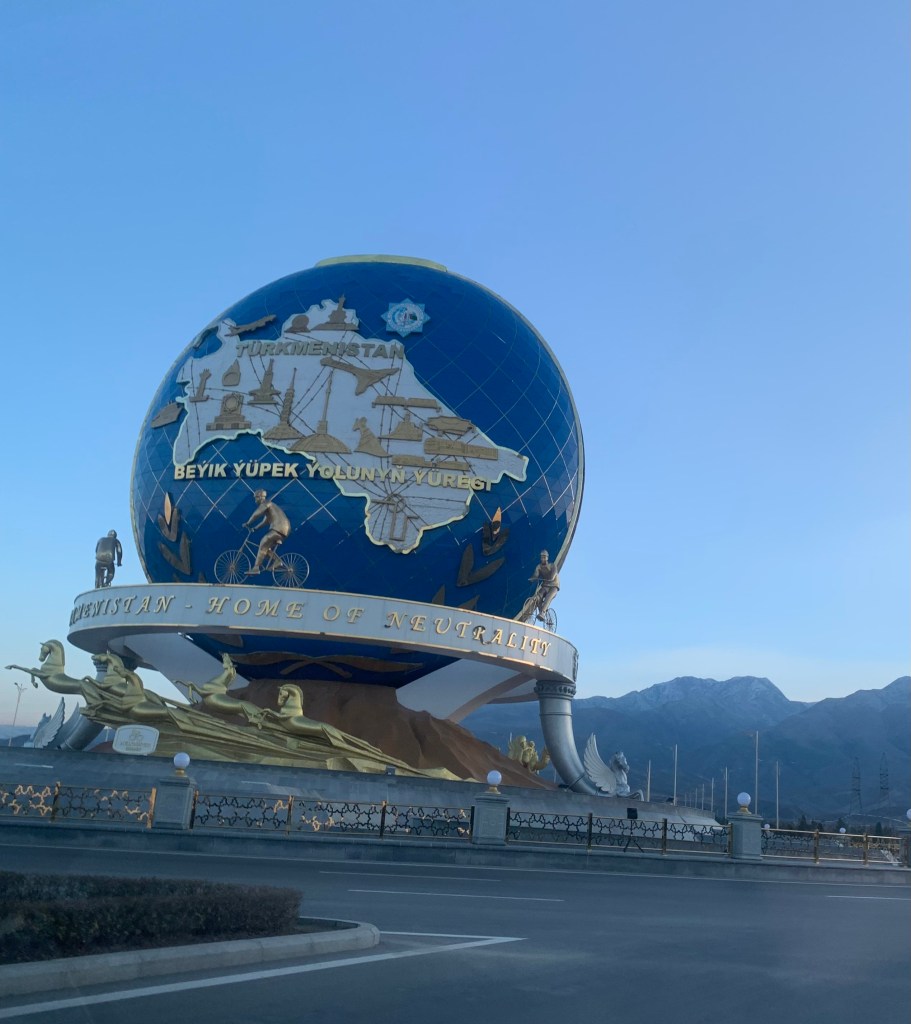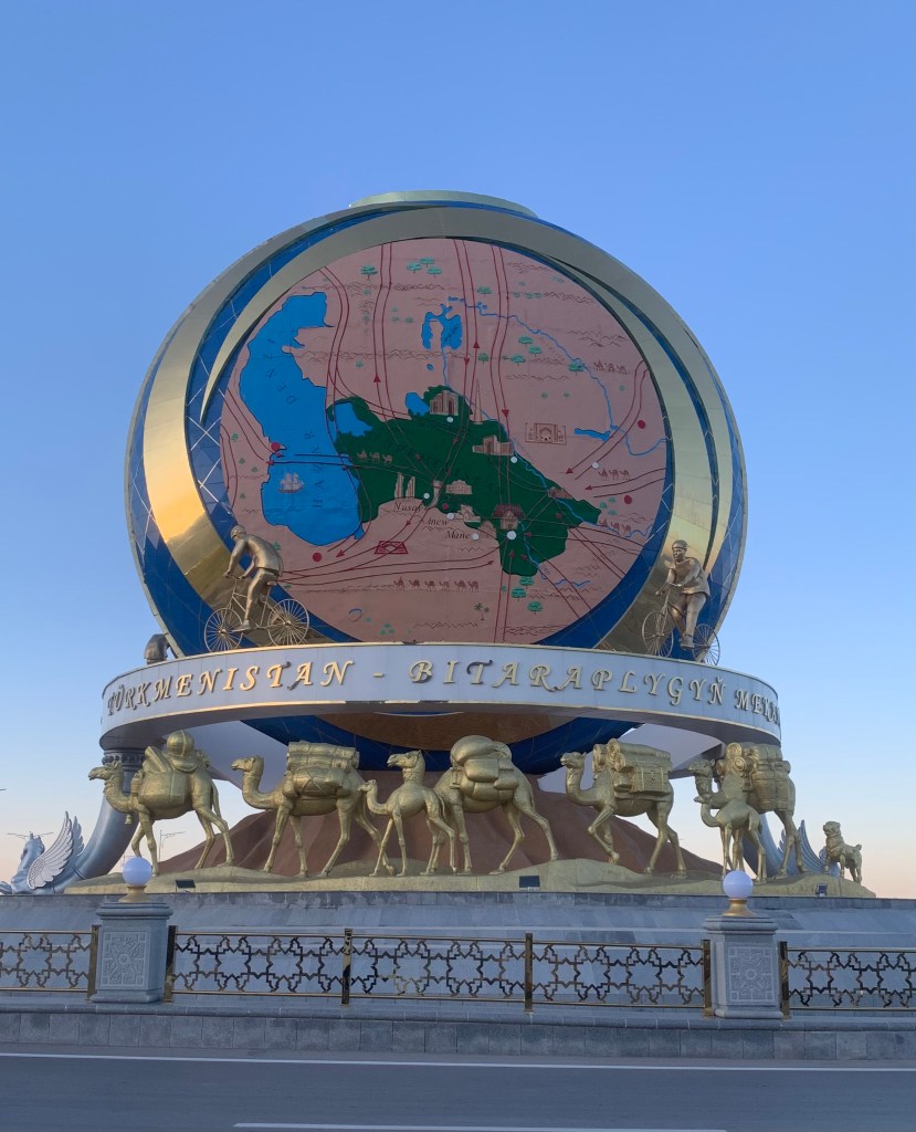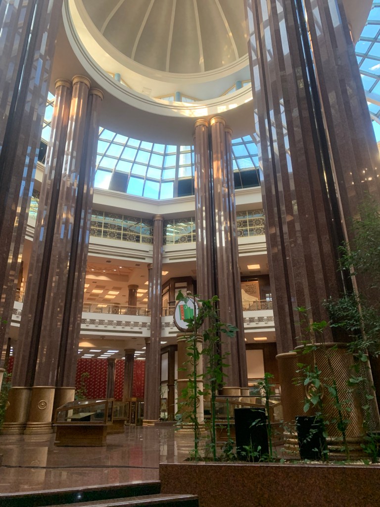 (The process to enter Turkmenistan started well before I left the UK – one cannot visit the country without a Letter of Invitation (LOI), usually provided by a travel agency which then also organises the visit in full. The letter is valid for a month and the transit visa gives you 6 days within that month. The trip is not cheap, especially if it is for one person, as in my case. Owadan Travel is a government approved agency and Saray, the lady with whom I dealt online, has kept me informed throughout. I was initially taken aback when I was told that they would only accept cash payment (in crisp $ notes) . Carrying $2500 – $3000 in cash around Central Asia for months was not an option. On arrival in Ashgabat, my guide took me to the Central Bank to get the cash. I visited their offices and met the owner and members of staff, was shown their little ethnographic museum and given a small present.)