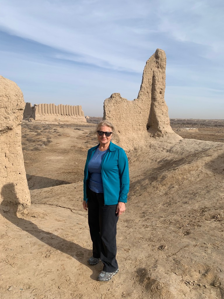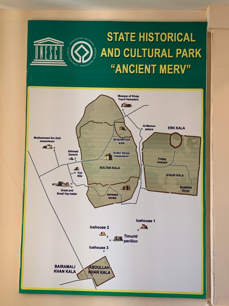 The original programme had me staying in Ashgabat for 3 days, with a couple of trips out. As we more than covered Ashgabat in 2 days, we headed to Mary – the old Merw of the Silk Road (the new town is some 45 km southwest from the ancient city – the river Murgab changed course. Merw is 350 km away from Ashgabat on the road that could be better. There are a number of checkpoints where everyone must slow down; there are also random stops and car document checks along the road. Having the green license plates (a government vehicle) helps but is not a guarantee. (The foreign business partners/investors have yellow plates; the diplomats have blue; folk have white.) One is not allowed to take photos of the checkpoint or police in action. It was good to get to Mary a day early – poor Guwanch would otherwise have had to drive some 800km in one day on those awful roads. It also gave us a nice evening out – dinner and disco!