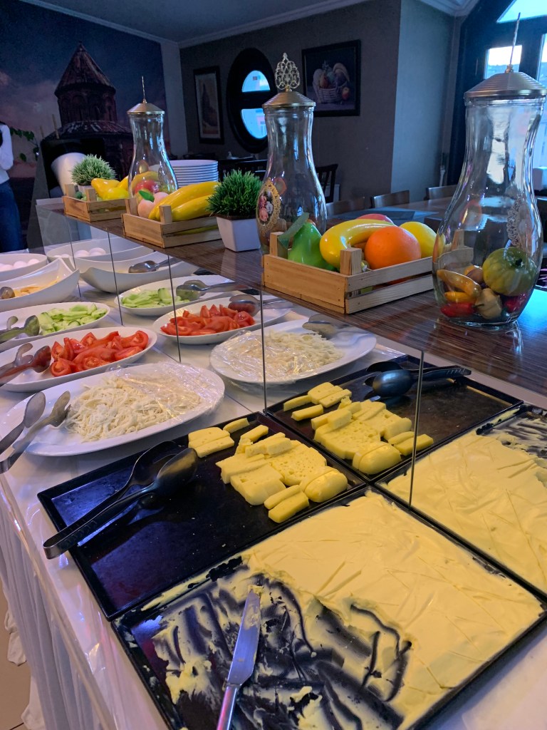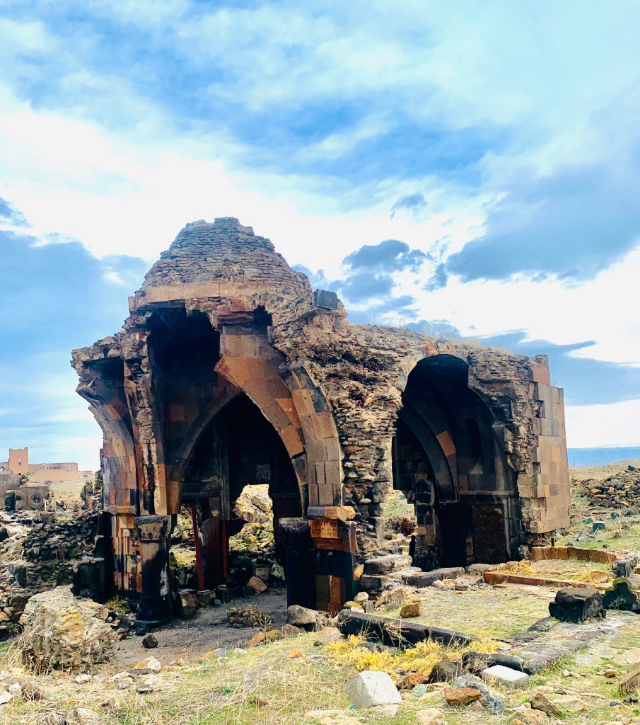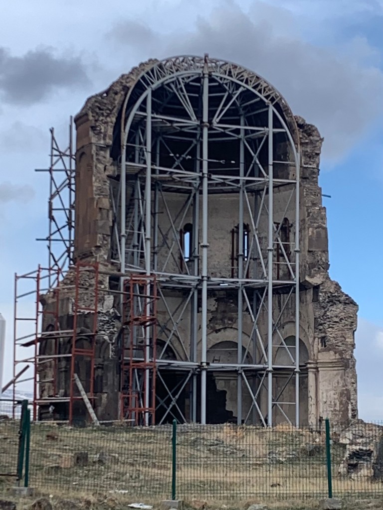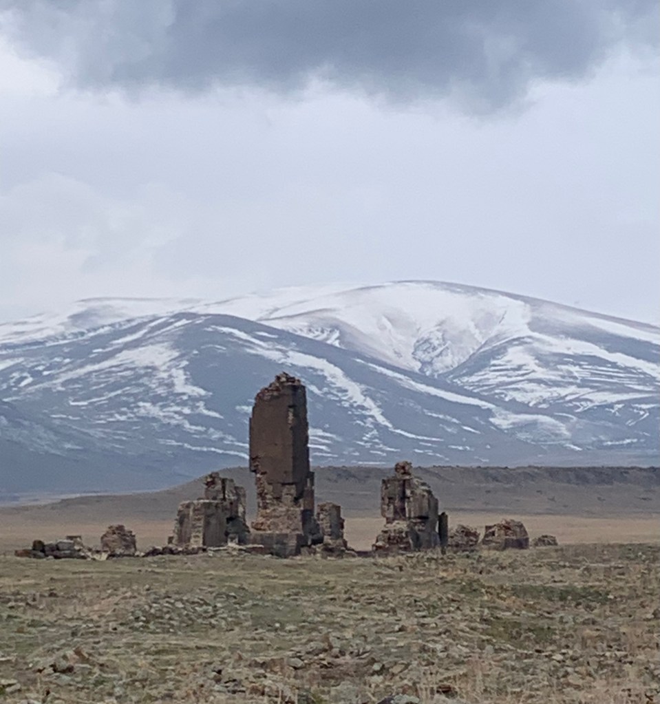 There is a long land border between Turkey and Armenia; unfortunately, no border crossings are open at present. The guide said it was the Russians that run this show (as demonstrated by the Russian flag, flying just a little higher than the Armenian one along the border we could see on the other side of the gorge/canyon that is the border between Armenia and Turkey at the Ancient Ani) .
