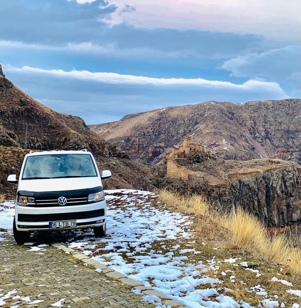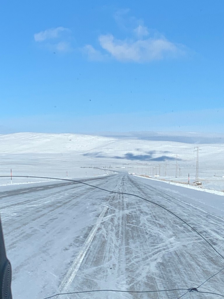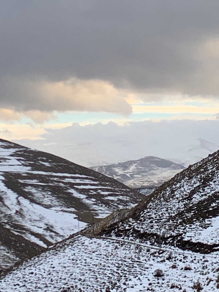 The convoluted journey starts from Kars (an 8 o’clock dolmus, filled to the rafters with people, potato sacks, suitcases, a child’s trike…) to Ardahan. Unfortunately, the next dolmus, to Posof, does not leave from the same bus terminal; the poor chap who I asked for directions (with my 5 words of Turkish and slooow English) got fed up explaining, picked up my rucksack, stuffed it into a clapped out Renault and took me to the other place 5 min away by car ( it would not have been fun carrying the backpack on icy pavements). I barely had time to thank him – he was gone! The snow was thin on the ground, the sky blue and clear, the day sunny and crisp. There was a pot-bellied stove in the waiting room, much needed and enjoyed. A longish wait, but once we got going, it was quick: the road is good and empty. The countryside looks bleak and beautiful, barren, brown, permanent. The last bit of Turkey, from Posof to the Georgian border, some 15K away, is only by taxi. It turns out to be the most expensive part so far (c. £10). I crossed the border on foot; Georgian officials were welcoming and happy to speak English. Thought I’d have to walk some half a mile to where I was told there would be a taxi – but they are eagle-eyed and spotted me. The older generation speaks Russian, the younger prefers English. So we spoke Russian on the way to Alkhatsike.