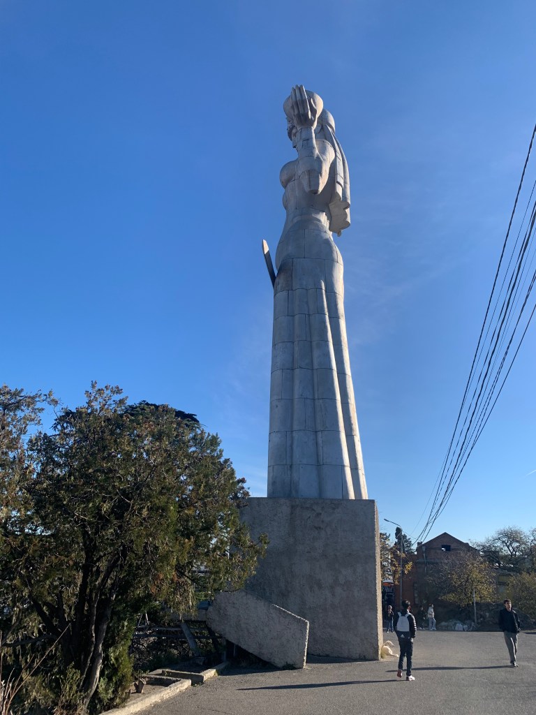 There are now conical church tops rather than minarets popping up over the town (though noticeably fewer). Am only here till I sort out transport to Armenia – there are trains to Yerevan, but they don’t run every day. So it’s back to the minibus/ marshrutka. In the meantime, had a couple of good walks – up to the fort and Mother Georgia (all 17 meters of her, with a sword in one hand and a glass of wine in the other), and down by the river Kura. Managed to see Daisi (Twilight) an opera by Zaharia Paliashvili performed at the Conservatory – professional musicians and students performing in celebration of its 100 anniversary.